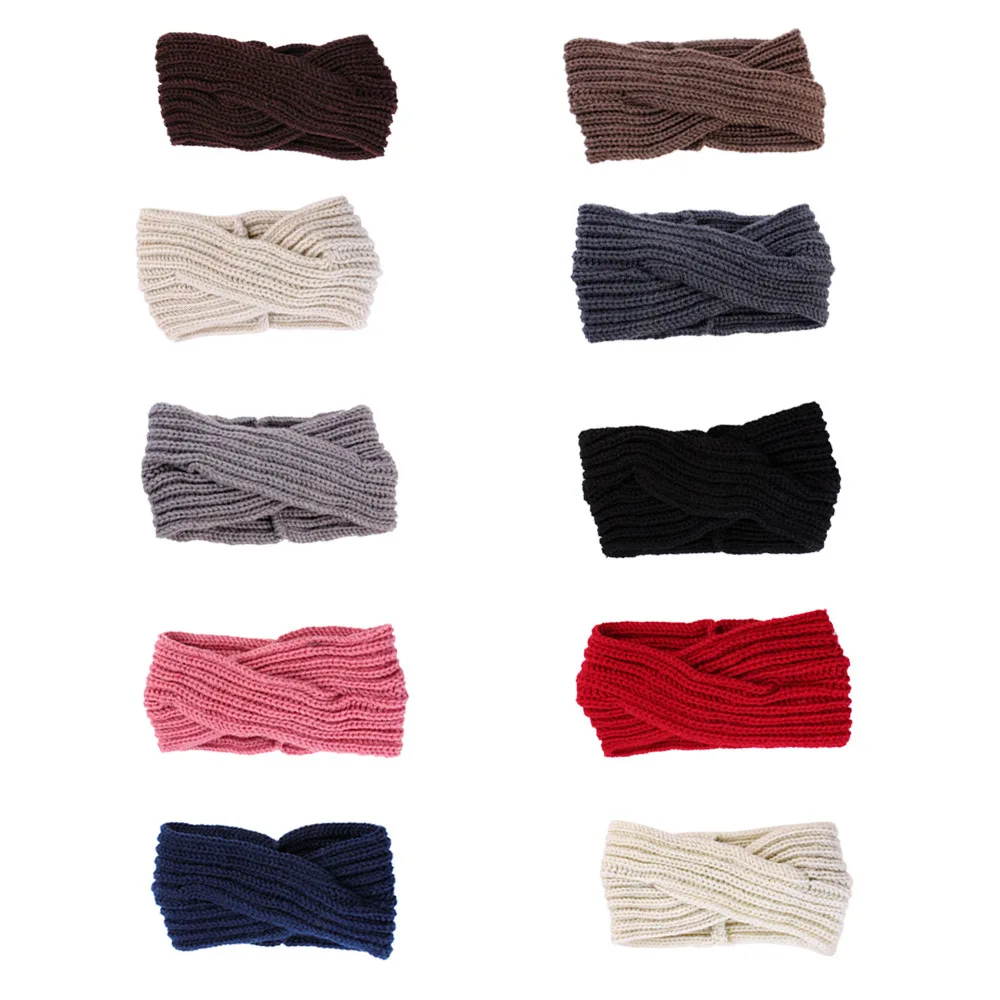 1pc Women Cross Twist Warm Wool Hair Band Accessories Handmade Crochet Knitted Headwrap