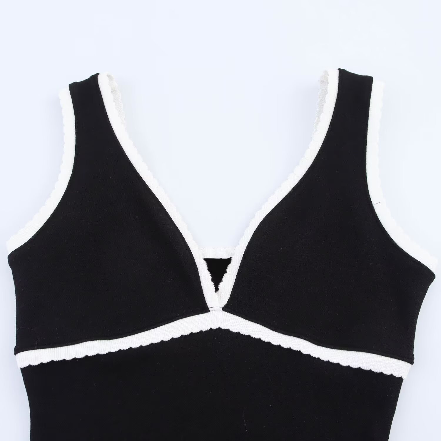 Women Black White Stripe V-neck Sleeveless Contrasting Camisole Dress
