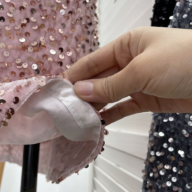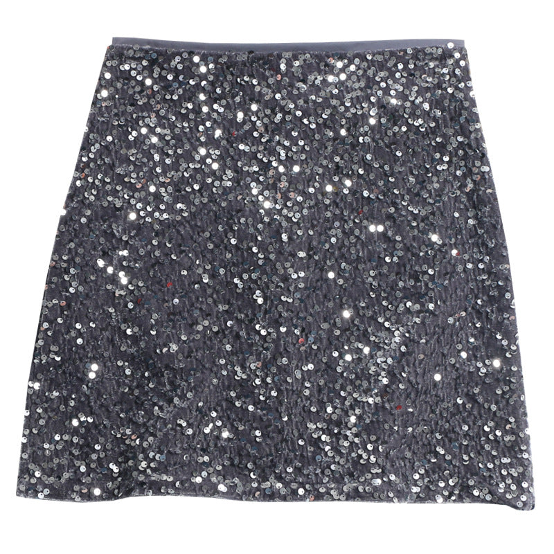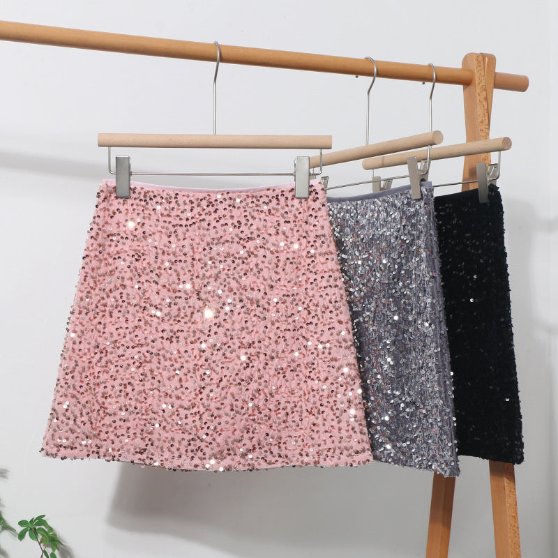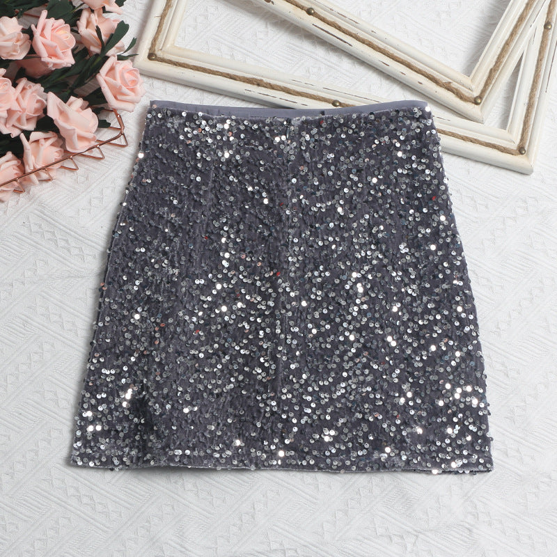 Women Sequined Midi High Waist Hip Hugging A-line Short Skirt